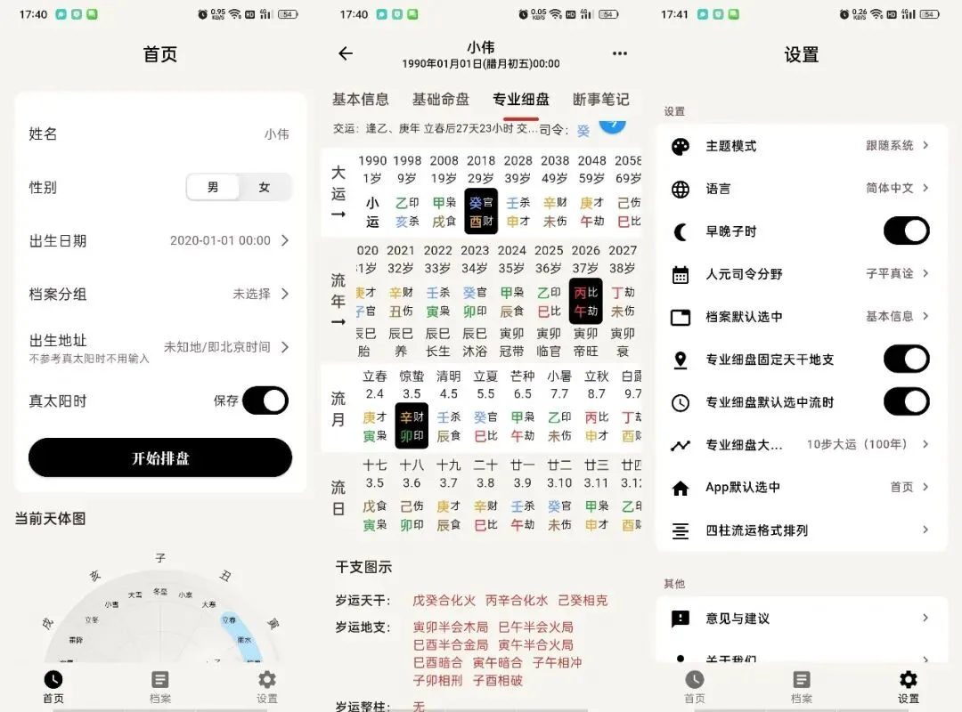 辰时八字排盘是一款专业的周易命理分析工具,提供从基础排盘到专业细盘的全面八字解读功能。它不仅能生成基础的八字命盘,还包含袁天罡称骨、五行个数与藏干、喜忌用神、大运财富、流日流时分析等丰富内容,并内置古籍解析参考。此外,应用还提供出生天体图、个人命理日历和多种桌面组件,方便用户随时随地深入了解自身命理。