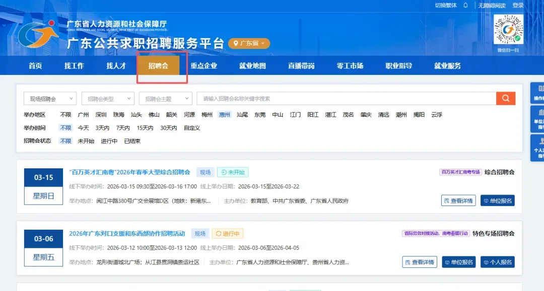 电脑端:广东公共求职招聘服务平台