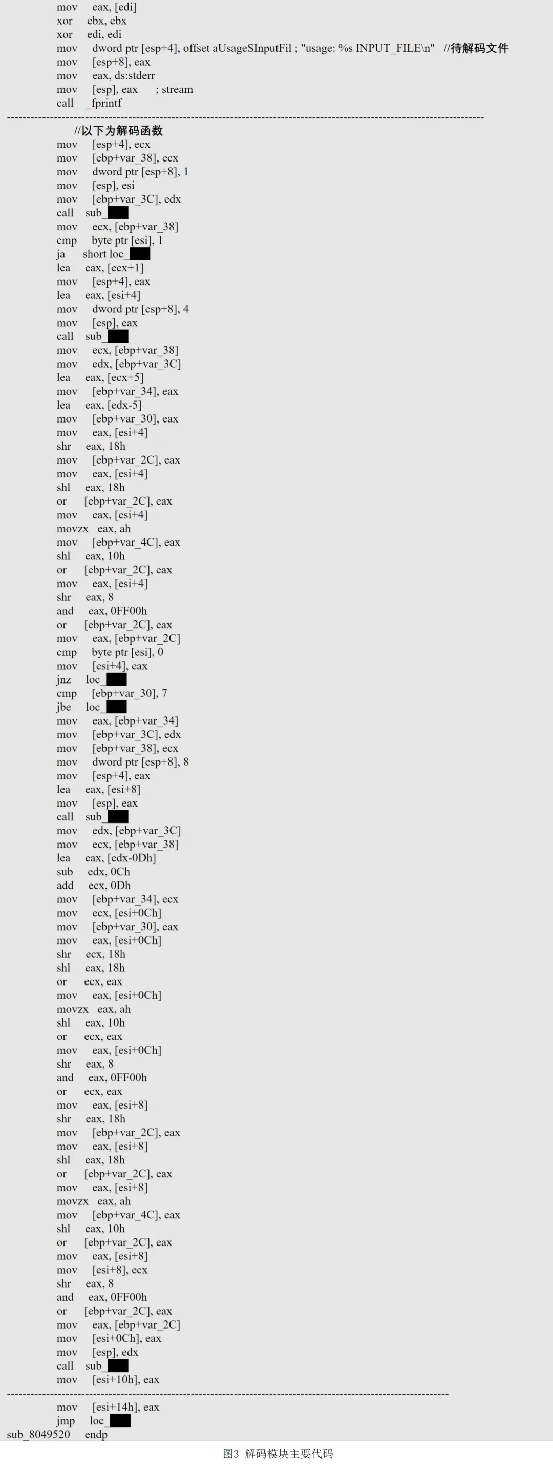 解密模块是通用模块,可被其他模块调用对指定文件进行解密,采用了与NOPEN远控木马(参见《“NOPEN”远控木马分析报告》)类似的RSA+RC6加密算法。如图2所示。