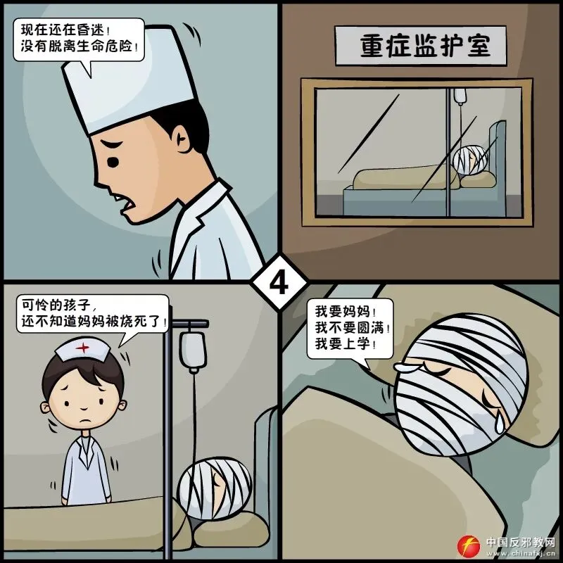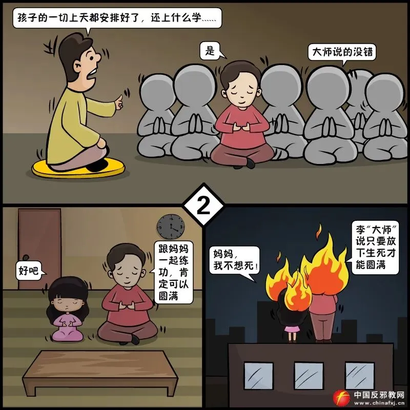 “法L功”蛊惑信徒说,练功可以“升天成神圆满”,称“圆满”时可以不要身体,并且只有放下生死才能“圆满”,那么,“弟子”按照“大法”的暗示和诱导,通过自焚“升天当神”就成必然了。为此说痴迷者自焚不断的根源在于受到了李“大师”“升天圆满”歪理邪说的蛊惑。