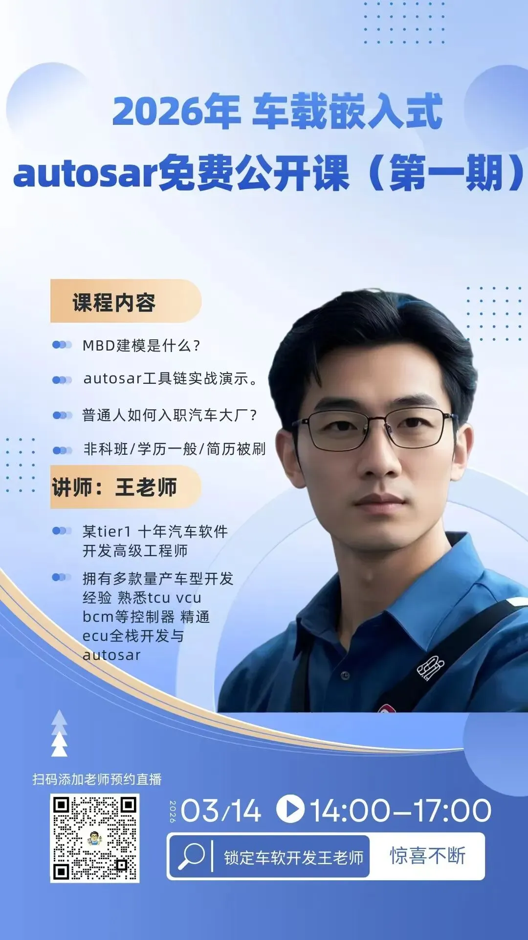 如果你想深入理解汽车软件背后的这套“宪法”与“民法典”,想知道ECU内部的RTE(运行时环境)是如何运行的,想知道如何像设计乐高积木一样设计整车软件架构,那么,不妨扫描下方二维码,加入我们的AUTOSAR课程。