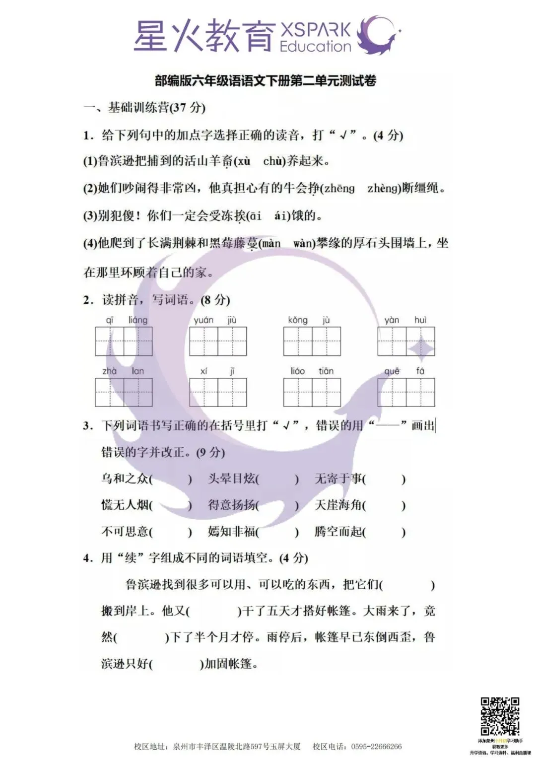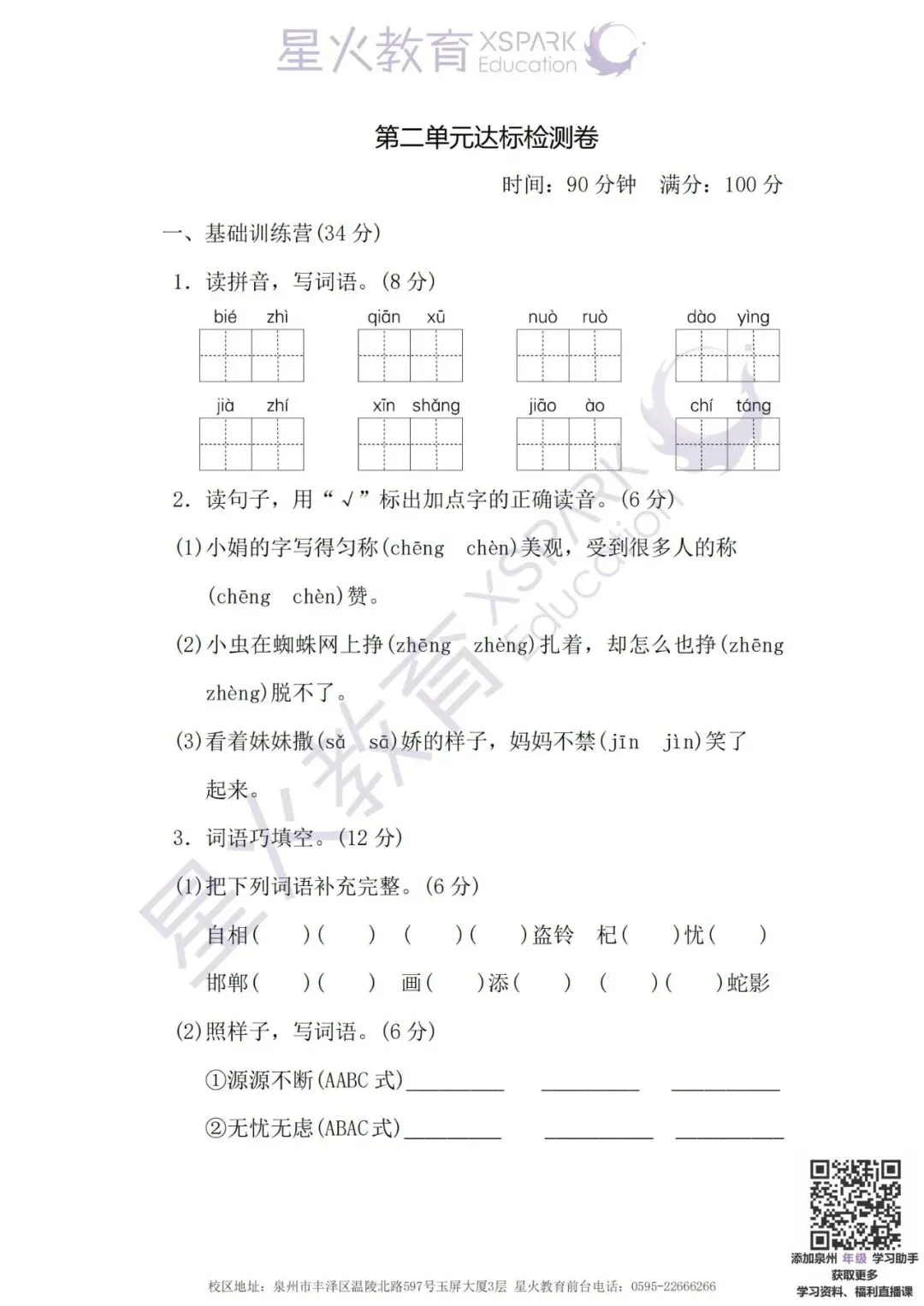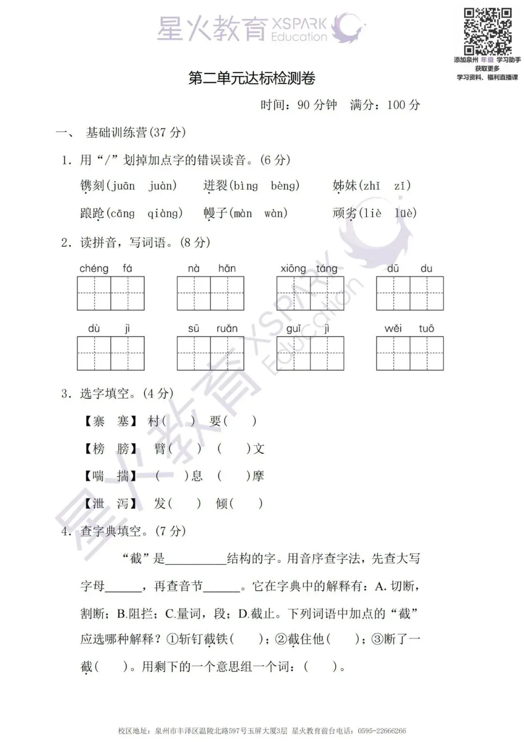 可下载丨部编版语文1-6年级下册第二单元测试卷