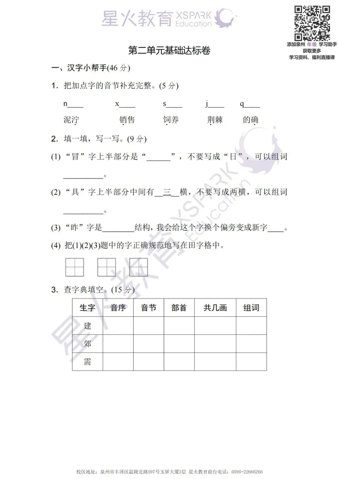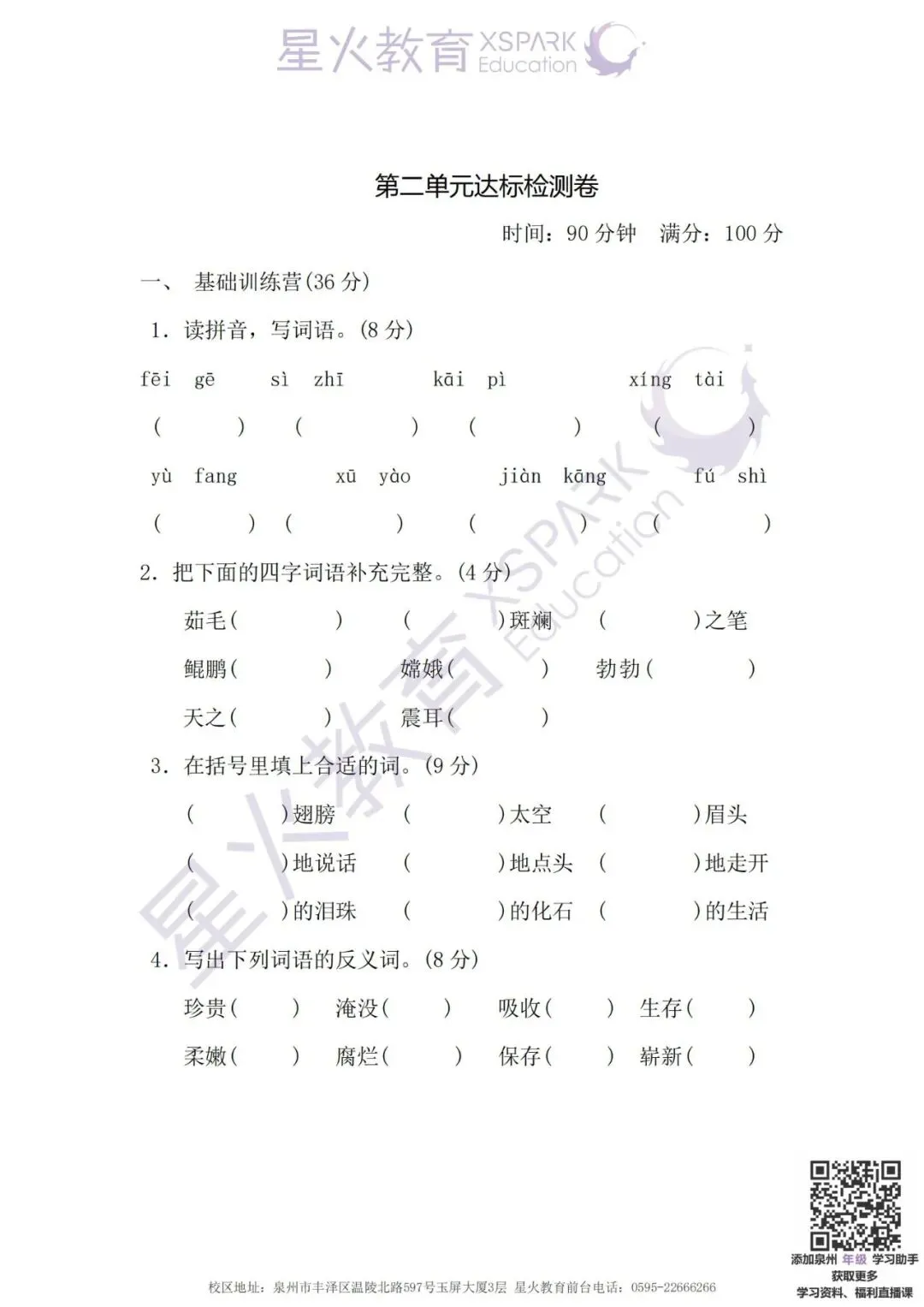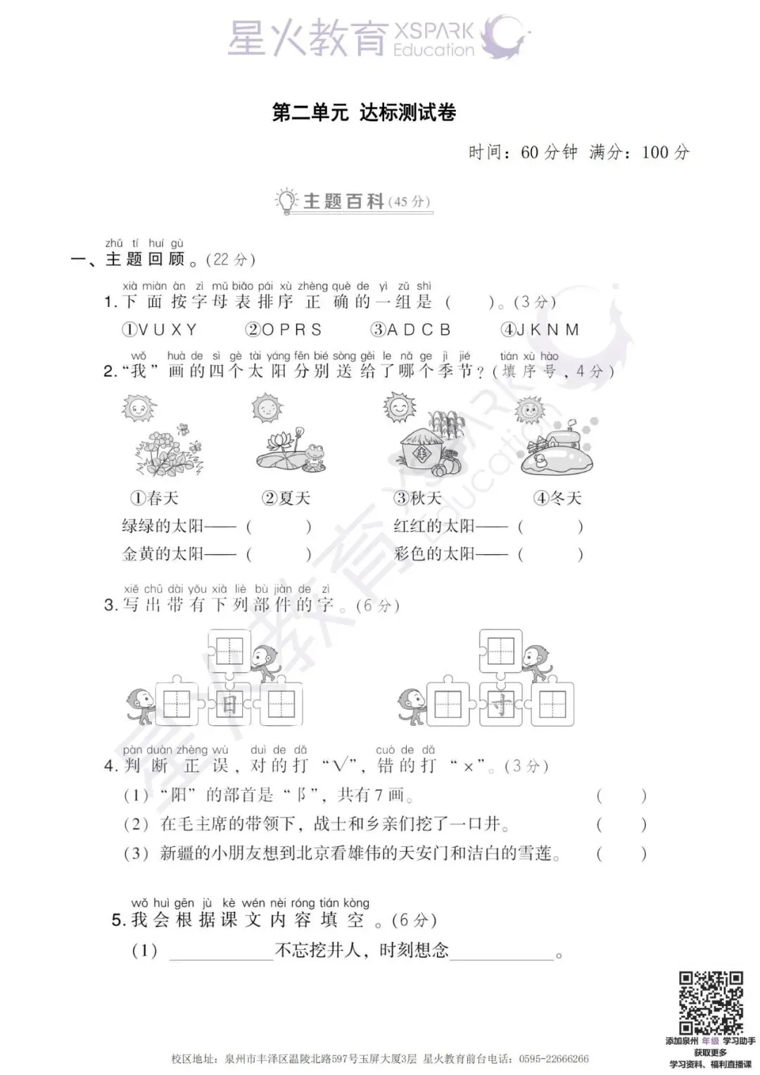 可下载丨部编版语文1-6年级下册第二单元测试卷