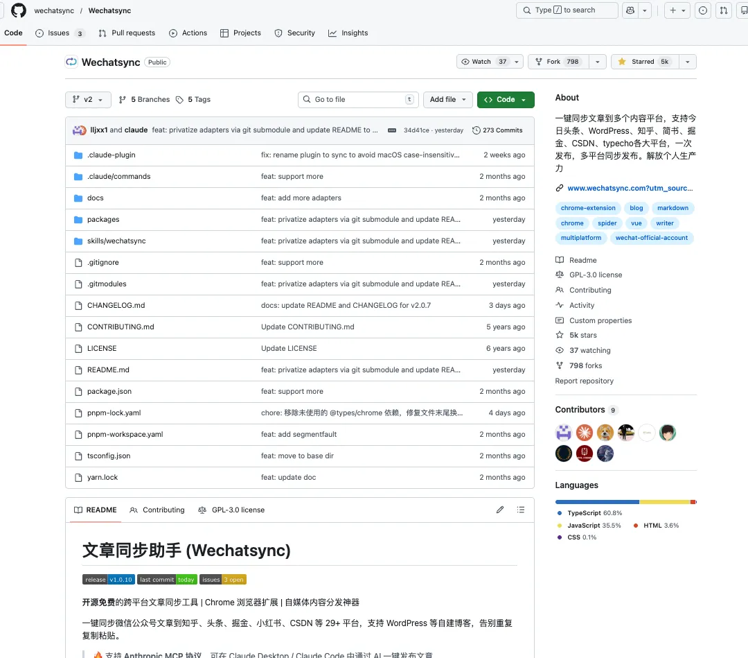 🔥终于找到了!Wechatsync免费开源,一键同步30+平台,自媒体人不再加班