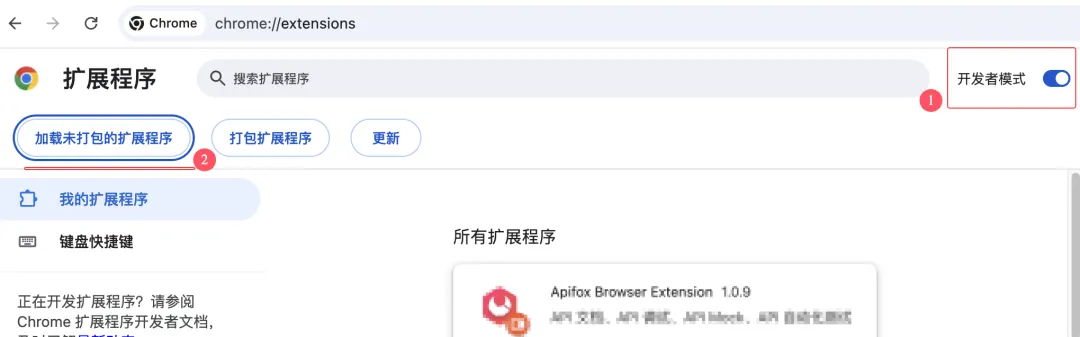 4. 开启右上角“开发者模式” -