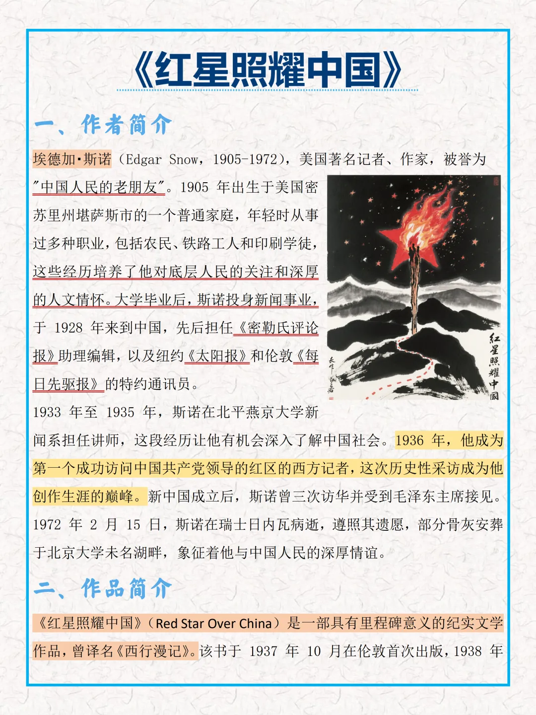 中考必背【《红星照耀中国》】,可打印 快收藏