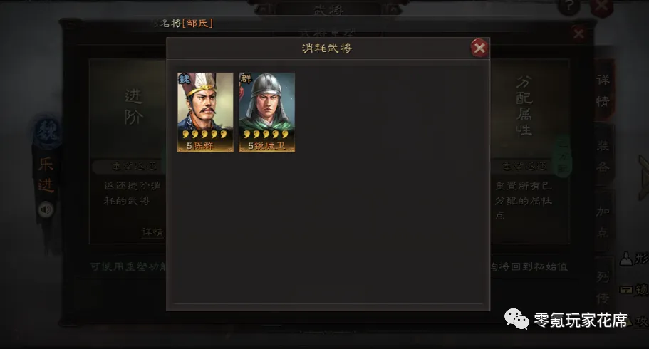 第三步:出现3个武将,陈群就在他们的肚子里面。