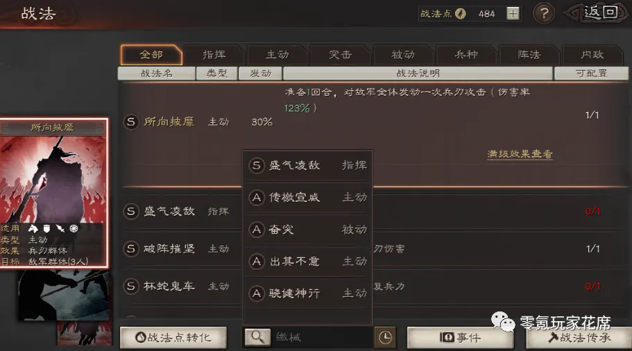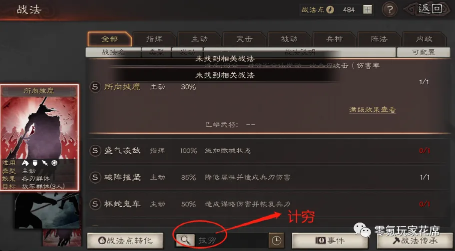战法界面输入“缴械”,你会发现所有缴械战法都列出来了。