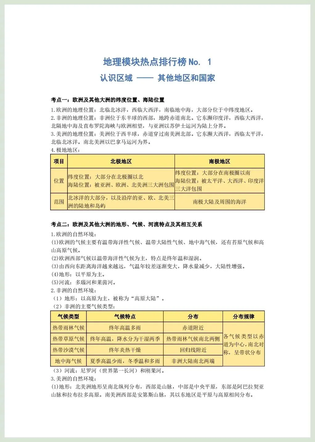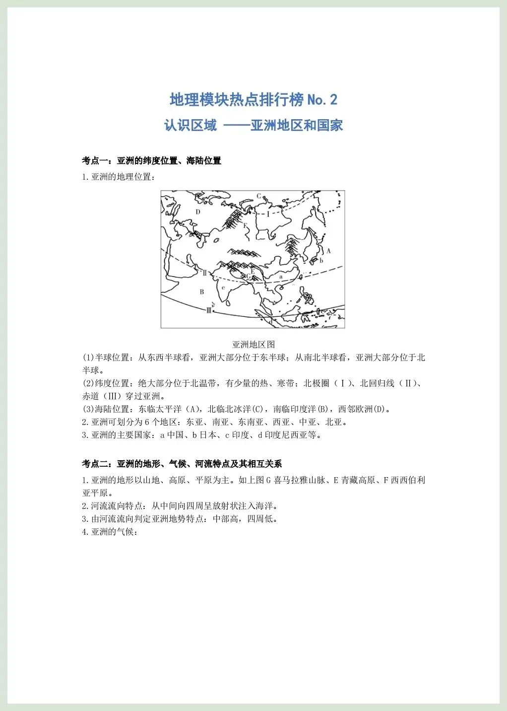 2026 春初中地理会考必备高频考点汇总,电子版可打印!