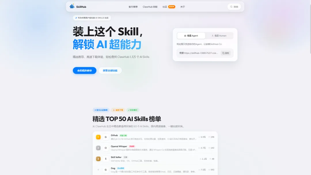 腾讯推出的 AI Skills 社区平台,主要是为用户做了优化。