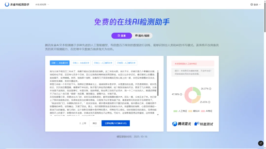 腾讯推出的一款 AI 内容检测工具。
