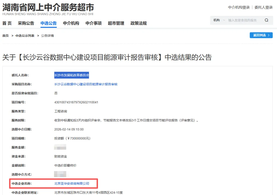 长沙市发展和改革委员会通过湖南省网上中介服务超市于2026年2月就“长沙云谷数据中心建设项目能源审计报告审核”项目,进行公开招标遴选。