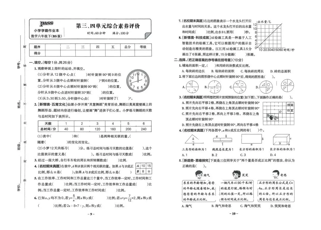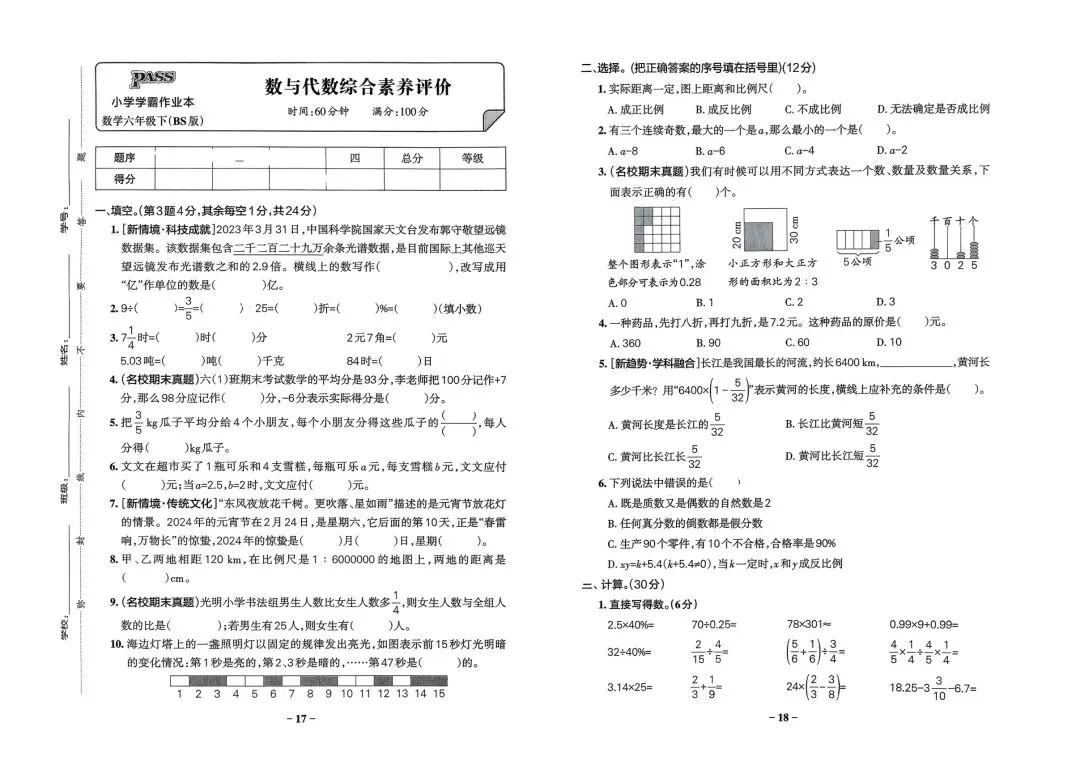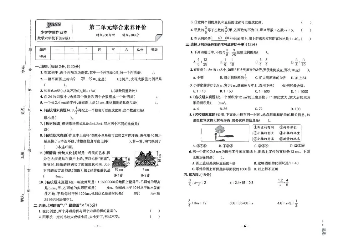 2026春新版六年级下册北师大版数学单元测试卷+期中期末综合素养评价卷,电子版可打印