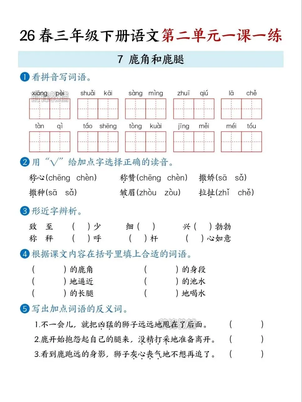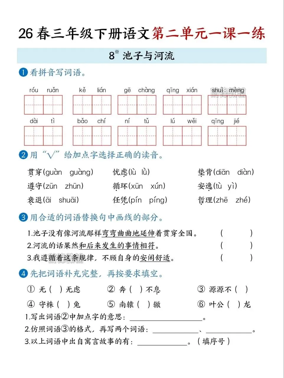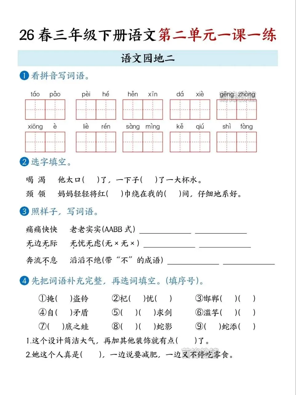 26春三年级下册语文第二单元一课一练电子版免费下载!