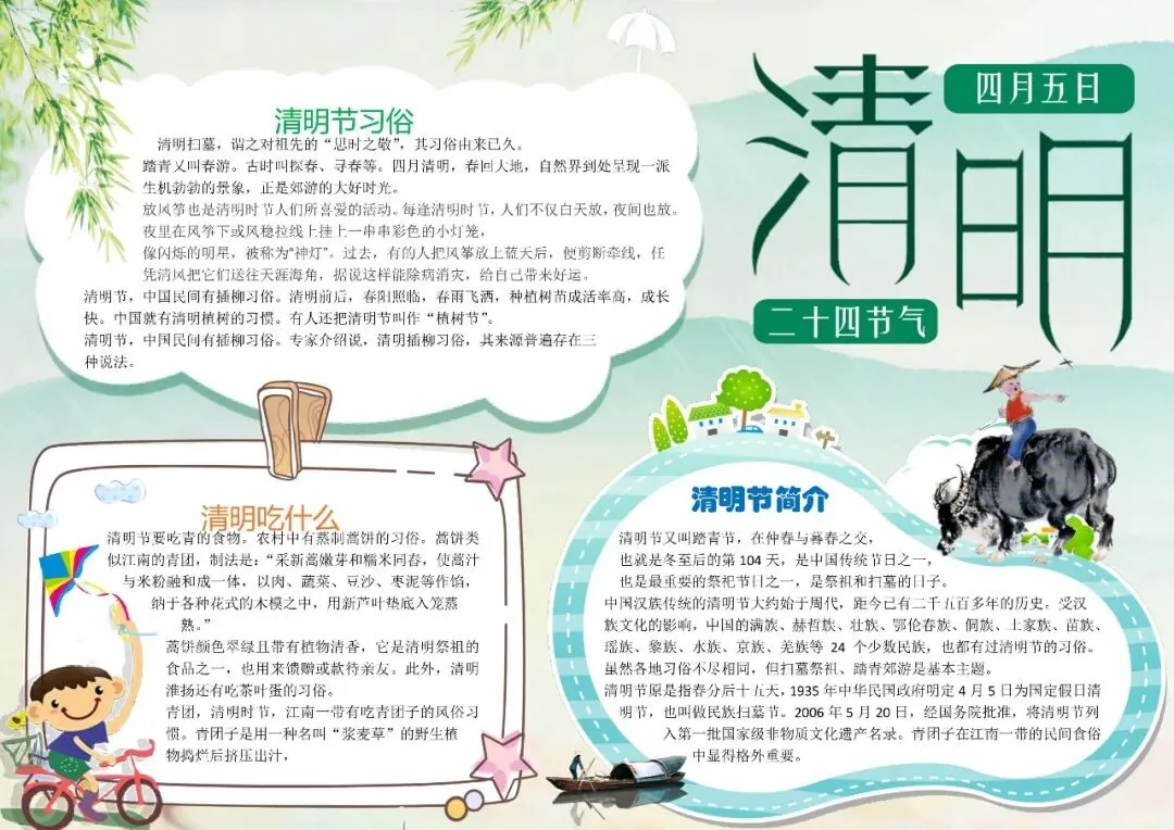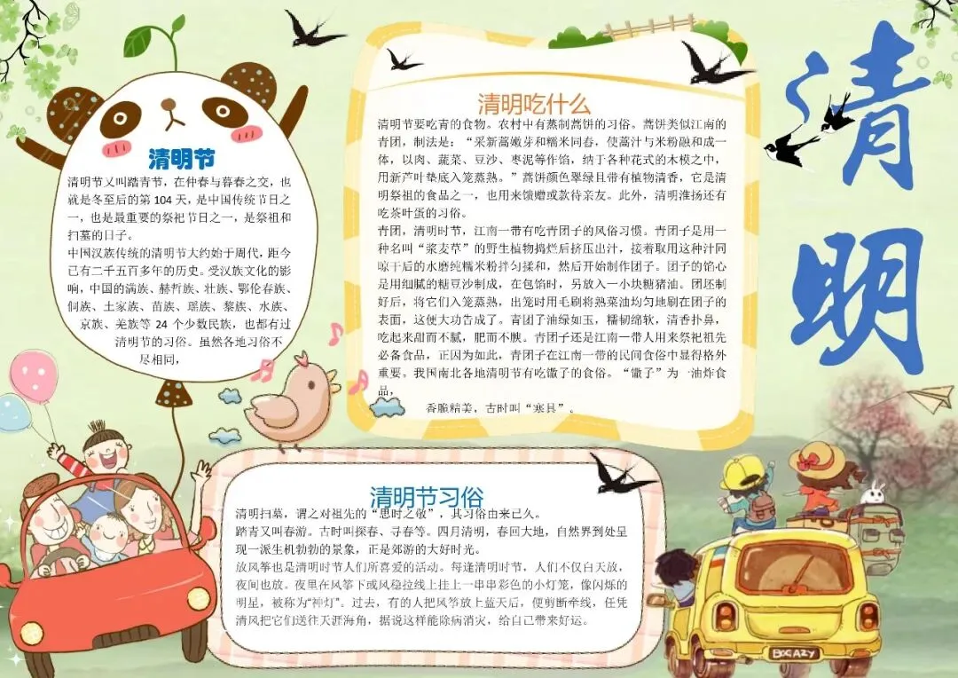 清明节小报 清明节手抄报 word文档+图片 可打印 可编辑