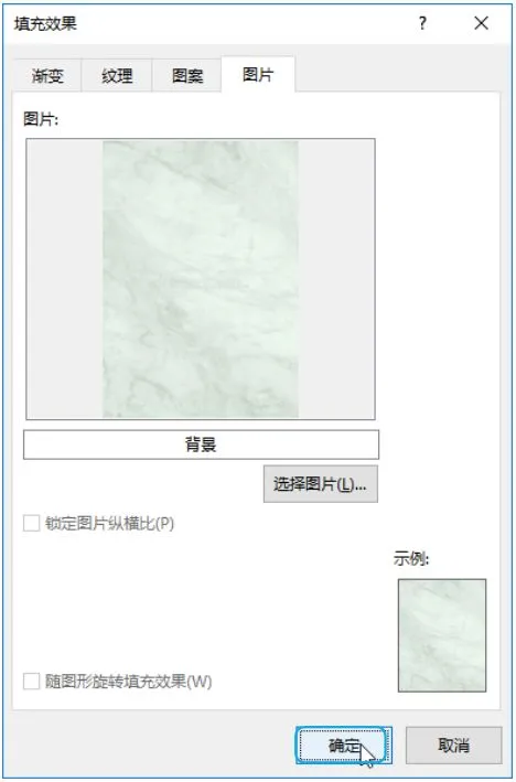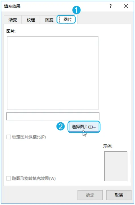 Step02 选择填充方式。打开【填充效果】对话框,选择【图片】选项卡;单击【选择图片】按钮。