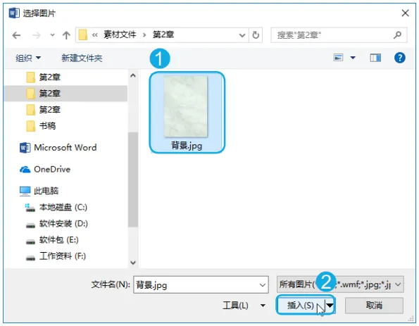 Step04 选择插入的图片。打开【选择图片】对话框,选择需要作为填充背景的图片;单击【插入】按钮。