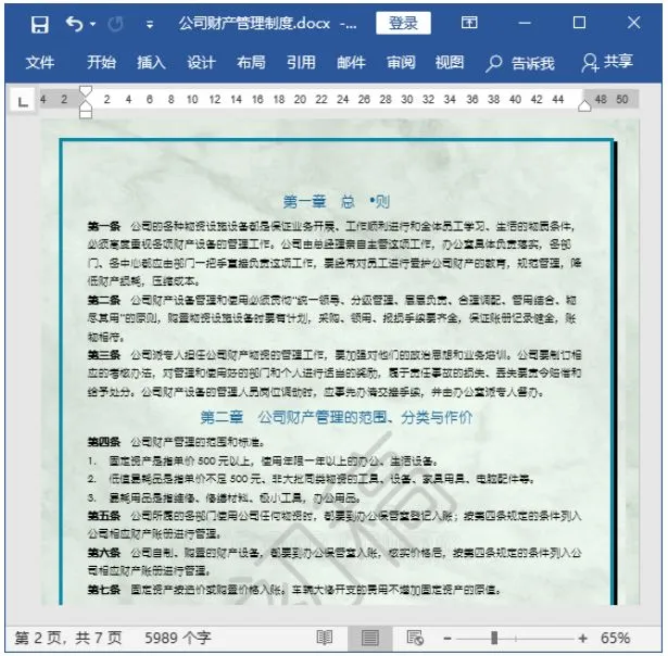 设置公司财产管理制度的页面边框