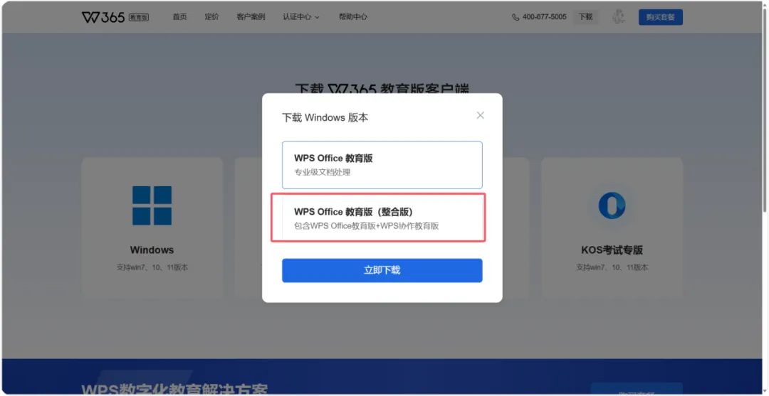 (3)下载专用版WPS:下载WPS 365教育版(整合版),该版本包含 WPS Office教育版与WPS协作教育版,将覆盖原有WPS版本,请提前做好数据备份。部分机房已预装该版本,直接登录即可使用。