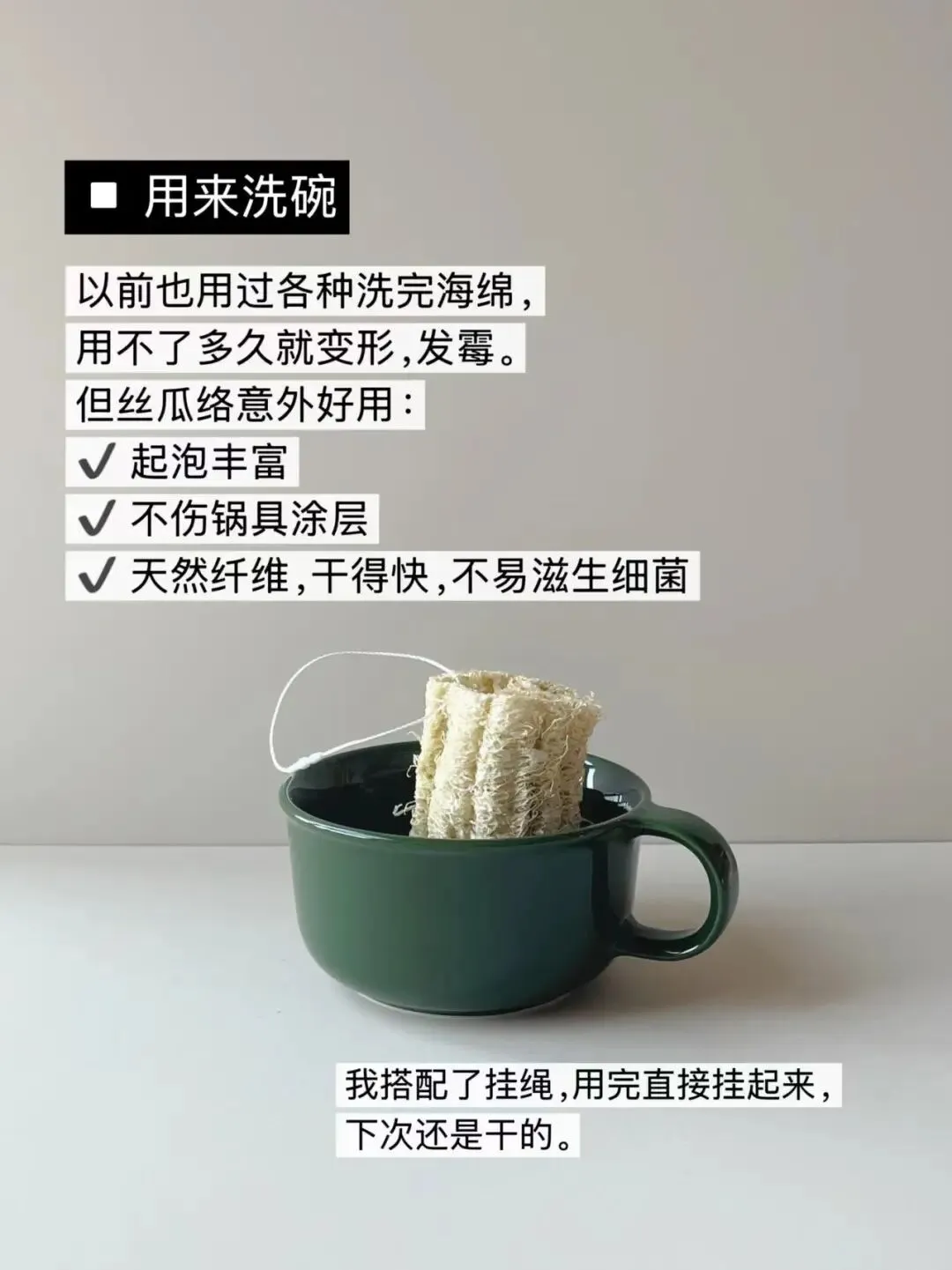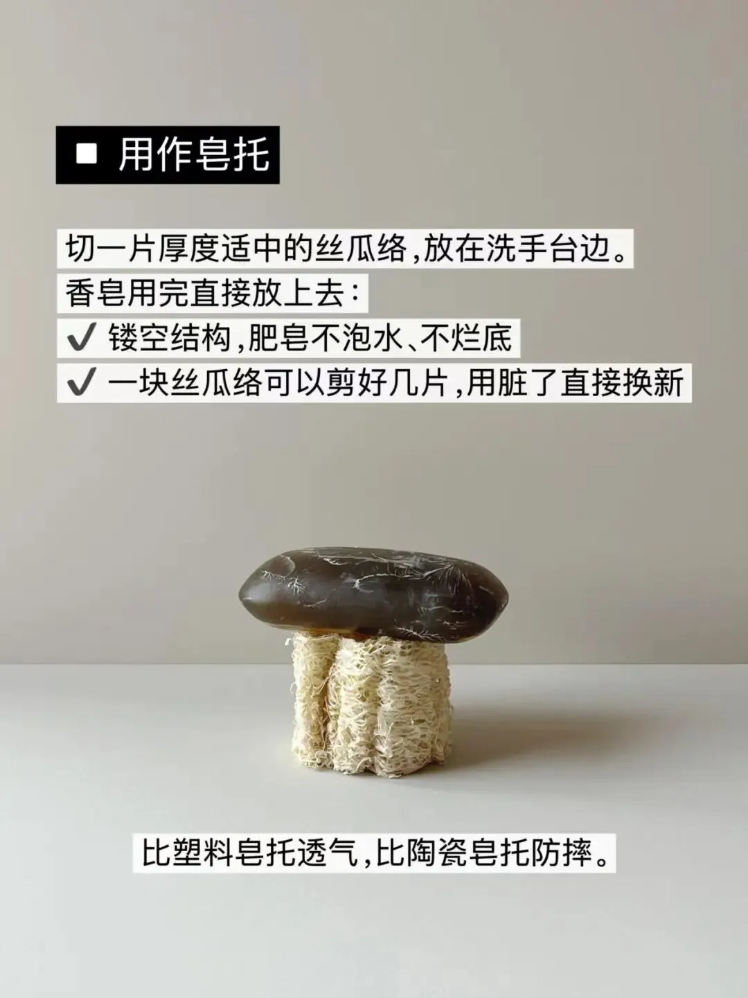 一物多用:丝瓜络才是极简生活神器,真的不只能洗碗 今年回老家过年,临走的时候,我妈给我装了两个晒干的丝瓜络。 放在几年前,我可能会觉得这东西土土的,不想带。 但这一年一直在过精简生活,我慢慢开始留意身边每一样东西的真正价值。 这一用才发现: 丝瓜络这种天然又朴素的小东西,简直是生活里的隐藏王者。 今天就跟大家说说,我用丝瓜络的几种真实打开方式,每一个都特别实用。 1. 洗碗:比海绵好用10倍 我之前用过各种洗碗海绵、百洁布, 用不了多久就发霉、发臭、变形,还容易藏污纳垢。 换成丝瓜络之后,真的省心太多: 去油快,起泡也多 不刮花锅的涂层 天然纤维,干得特别快 用完挂起来通风,下次用还是干爽的,干净又健康。 2. 当皂托:肥皂再也不会泡烂 这个是我无意中发现的。 切一片厚度适中的丝瓜络,放在洗手台, 肥皂直接放上去就行。 因为它本身是镂空的,水会自动沥干, 肥皂不软、不塌、不烂底,用得特别干净。 脏了直接换一片,几乎零成本,比买皂托划算多了。 3. 做扩香:天然又有氛围感 剪一小块丝瓜络,滴上几滴精油, 放在床头、衣柜、书桌都可以。 它的纤维能牢牢吸附精油,香味慢慢散出来, 比买扩香棒、香薰便宜太多,还自带一种质朴的质感。 闻腻了就换一种精油,一块能用很久。 4. 还有这些隐藏用法,随手就能用 剪成一段,热水泡软当沐浴擦,温和去角质,不伤皮肤 切厚片当杯垫,隔热又吸水,样子还很耐看 剪小条塞进鞋子里,吸湿去味,比除湿包还好用 干净的丝瓜络还能当简易茶滤,天然又安全 我越来越觉得: 极简生活,不是什么都不买, 而是把手里已有的东西,用到极致。 就像有人说的: “我们真正需要的物品,往往已经在我们身边。” 丝瓜络不贵、不精致、不网红, 但它天然、耐用、一物多用, 安安静静就能把生活打理得舒服又清爽。 如果你家里也有丝瓜络, 别再只拿它洗碗了, 试试这些方法,你会发现: 最简单的东西,往往最实用。 喜欢这种精简、物尽其用的生活, 也分享给喜欢简单过日子的你。 你还用过丝瓜络做什么? 欢迎在评论区告诉我~