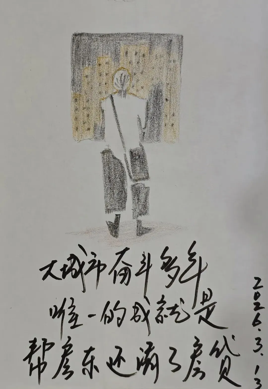今天临摹小林老师的这幅画,看着画里那个背对高楼的背影,突然读懂了无数打工人的心酸。