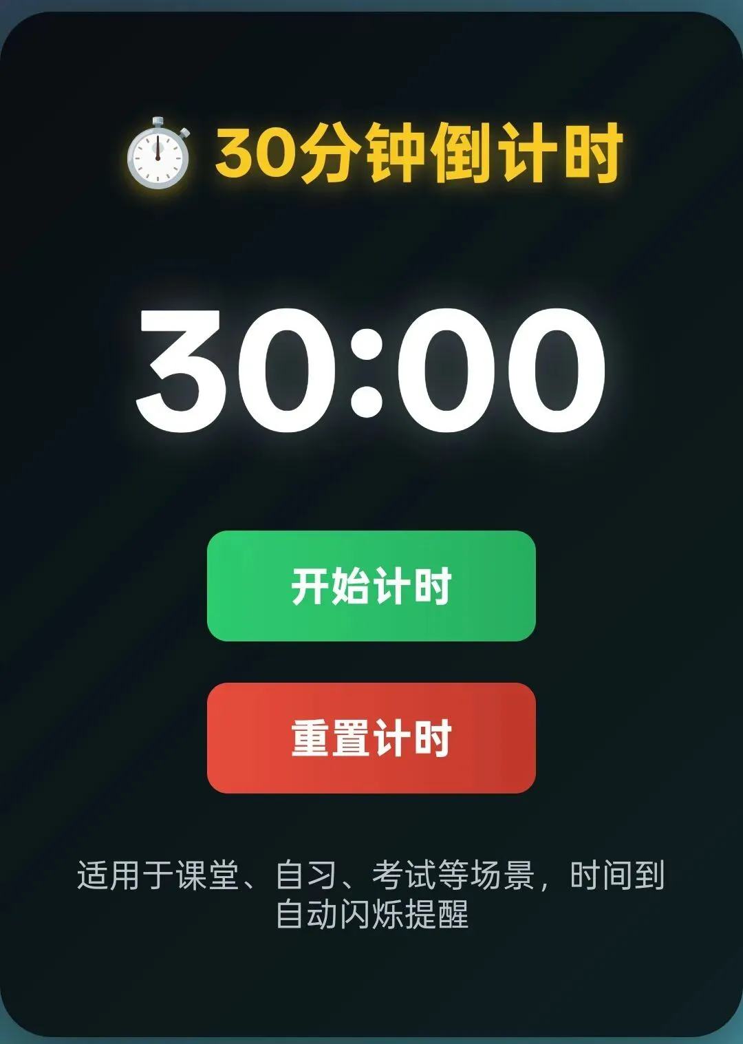 上周末,在“仰望星空伯乐计划”项目组,有幸聆听了陈俊杰老师专题讲座“ai+教育,全景洞察”,陈老师在分享中提到了几款简单又实用的课堂小工具,让我深受启发。那份点亮教学的灵感,我一直记在心里。今天,我终于把这份灵感变成了现实,用“ai”制作了作业倒计时器和随机点名器,带进了我的托管课堂。