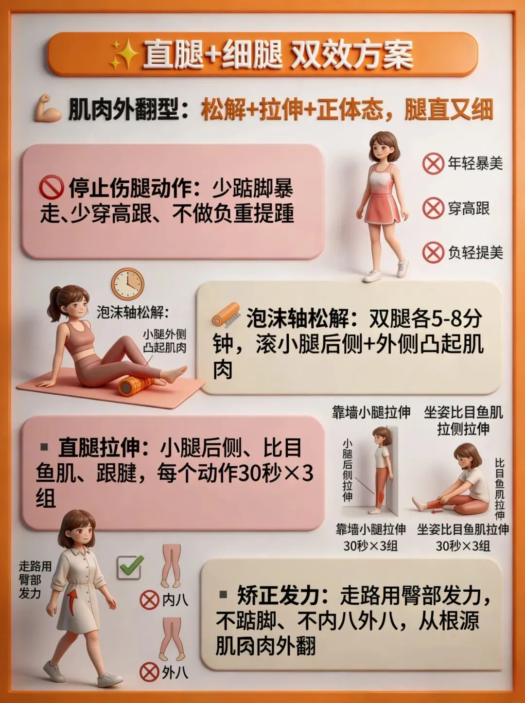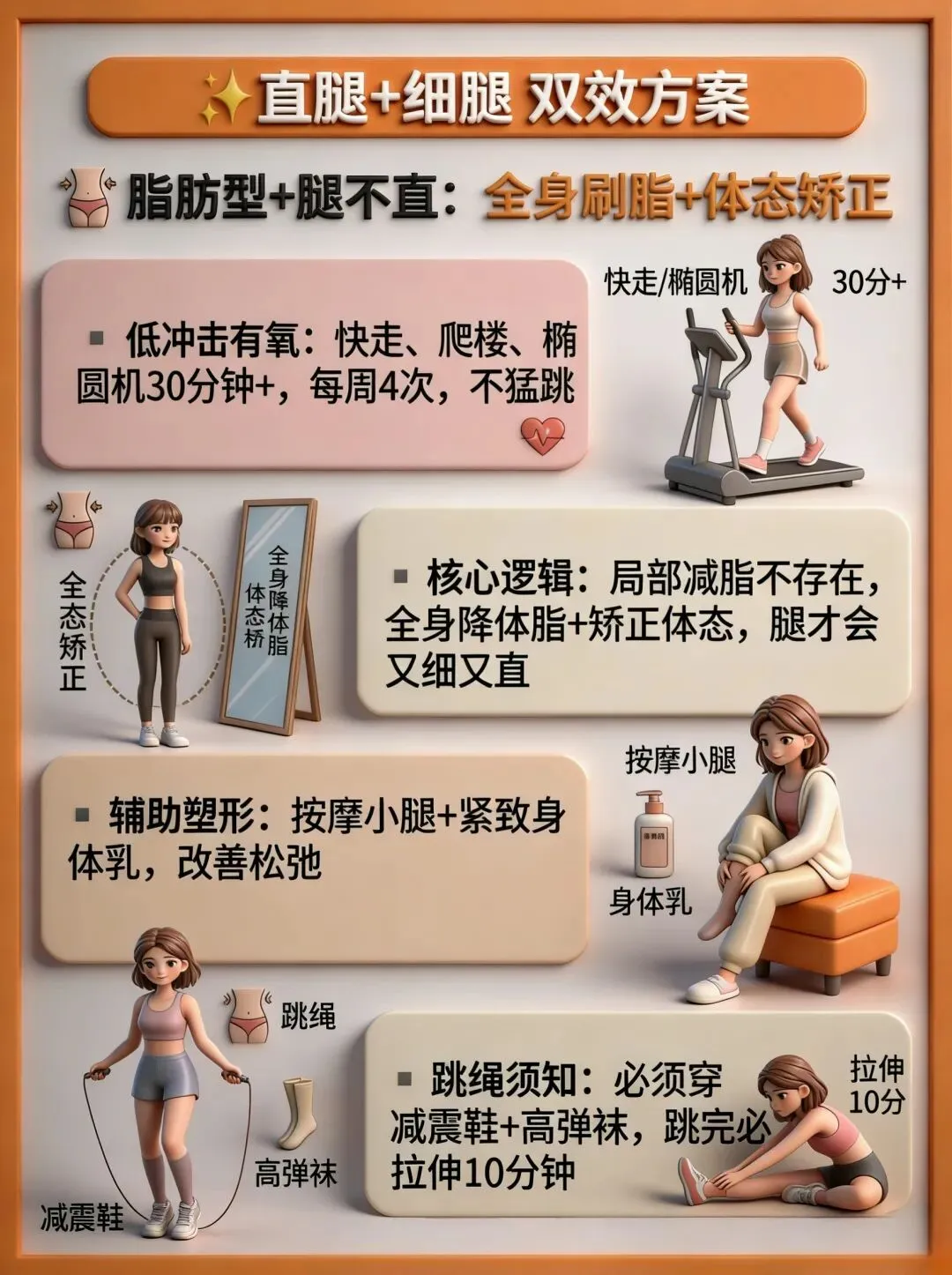 核心逻辑:局部减脂不存在!全身降体脂+矫正体态,腿才会又细又直
