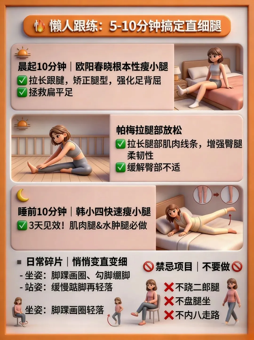 晨起10分钟✨:欧阳春晓根本性瘦小腿 → 拉长跟腱,矫正腿型,拯救扁平足