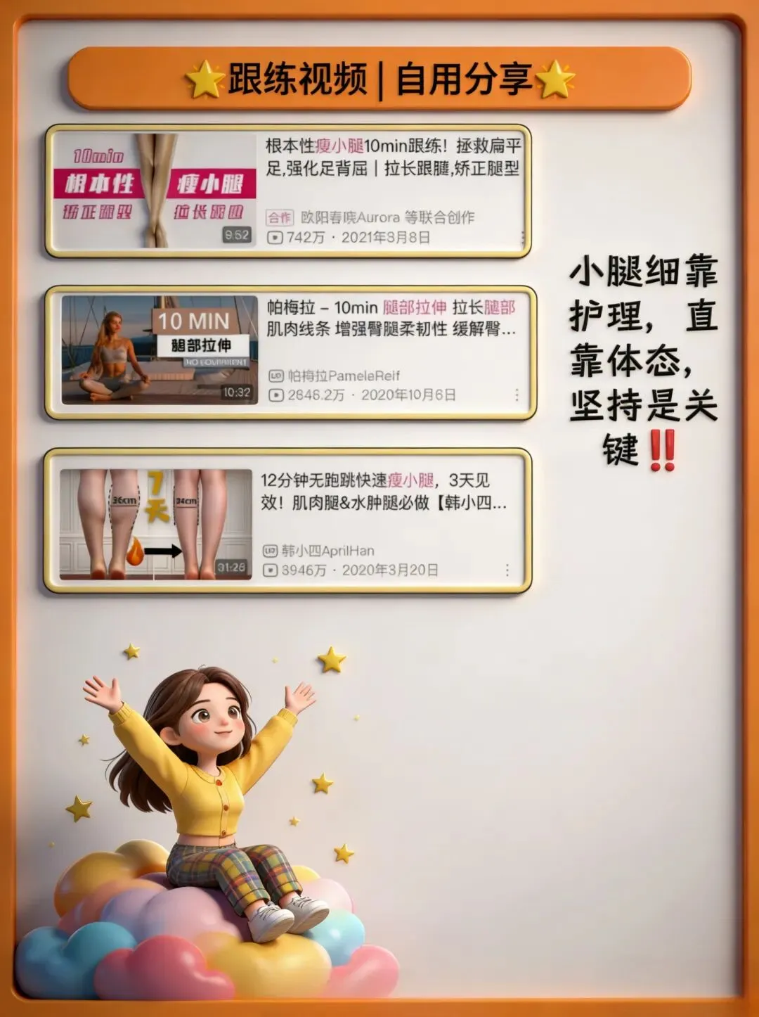 每天抽10-15分钟跟练,慢慢告别肌肉腿、水肿腿,夏天就能美美穿小裙子啦💃