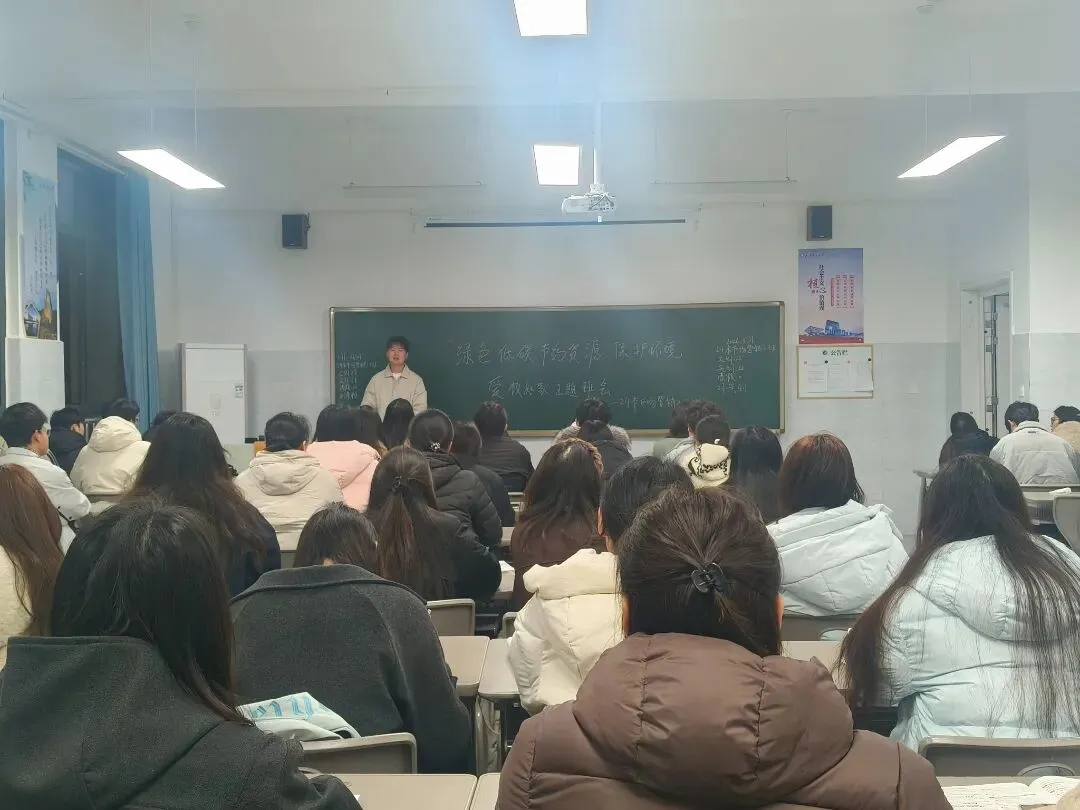 班会紧扣校园绿化实景展开宣讲,带领同学们回顾我校校园绿化实践成果,结合校园绿地规划、草坪维护等真实案例,把生态理念从理论落到校园日常。从校园生态价值、碳汇贡献、环境育人功能切入,阐释“绿水青山就是金山银山”的时代内涵,强调大学生应做生态文明的学习者、传播者与实践者。接着,分享日常节约小妙招,提出美化校园、减少浪费的可行建议。最后,呼吁同学们尊重劳动成果,守护校园一草一木;坚持节约优先,争做资源循环表率;弘扬生态理念,带动身边人共筑美丽校园。
