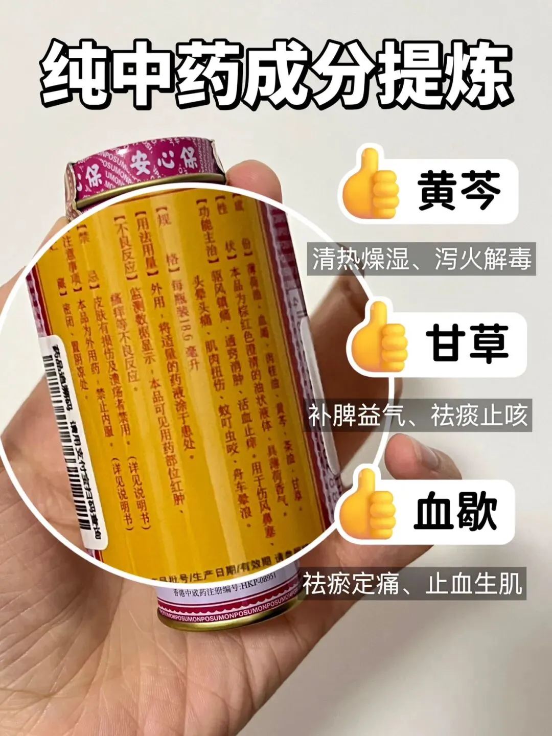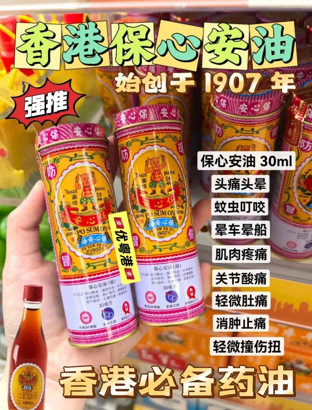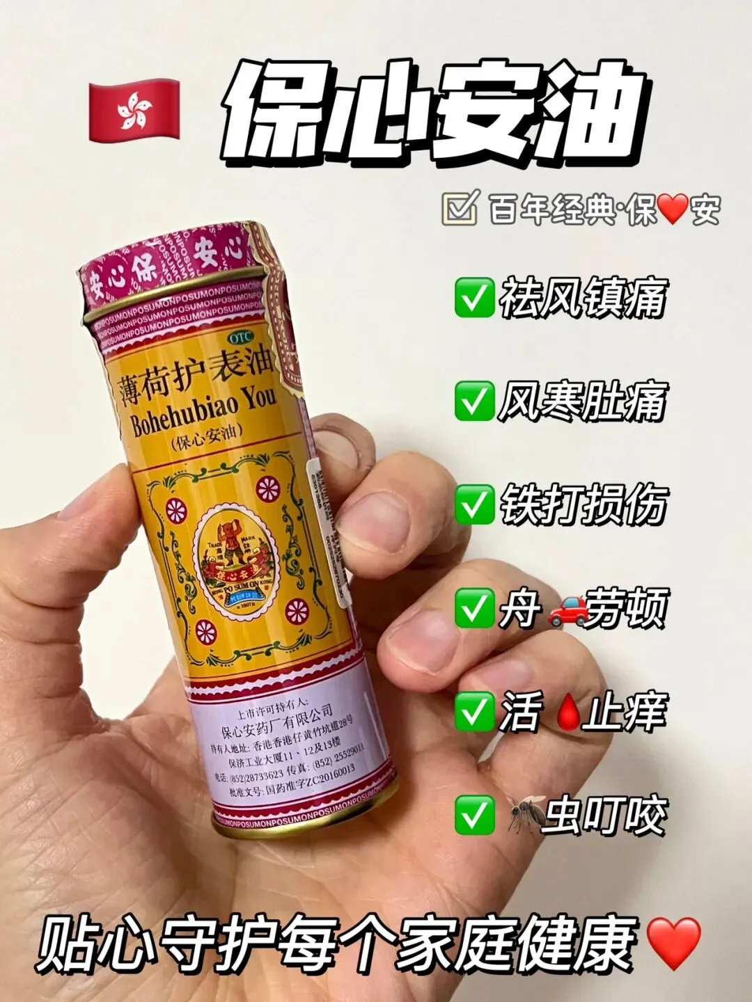 保心安油是香港最畅销的外用中成药之一,可以说是广东省省油,家庭必备,人手一瓶!其主要功效为驱风镇痛、通窍消肿、活血止痒。它常用于缓解因轻微碰撞或扭伤引起的肌肉与关节疼痛、伤风引起的头痛鼻塞、蚊虫叮咬的瘙痒疼痛以及晕车晕船的头晕恶心等。