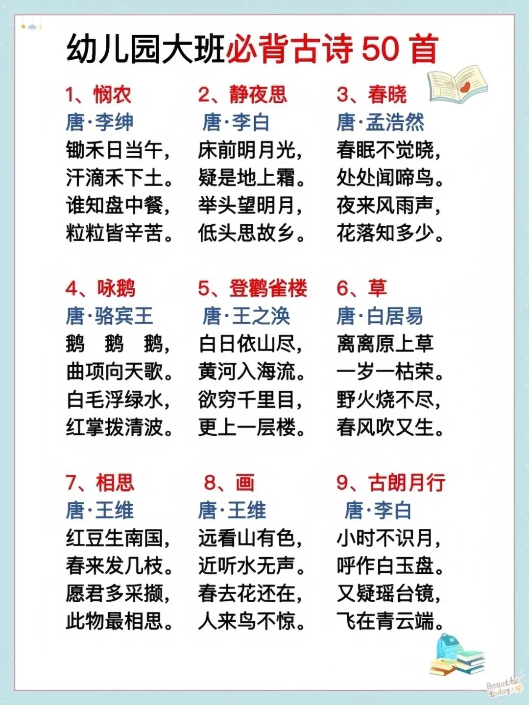 幼儿园必备50首古诗!快给孩子收藏起来