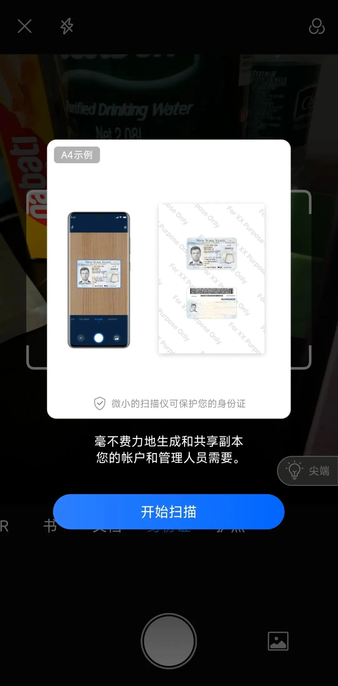 使用也很方便,授予相机使用权限,然后拍照识别就好了,支持自动校正、身份证正反面拼接等。