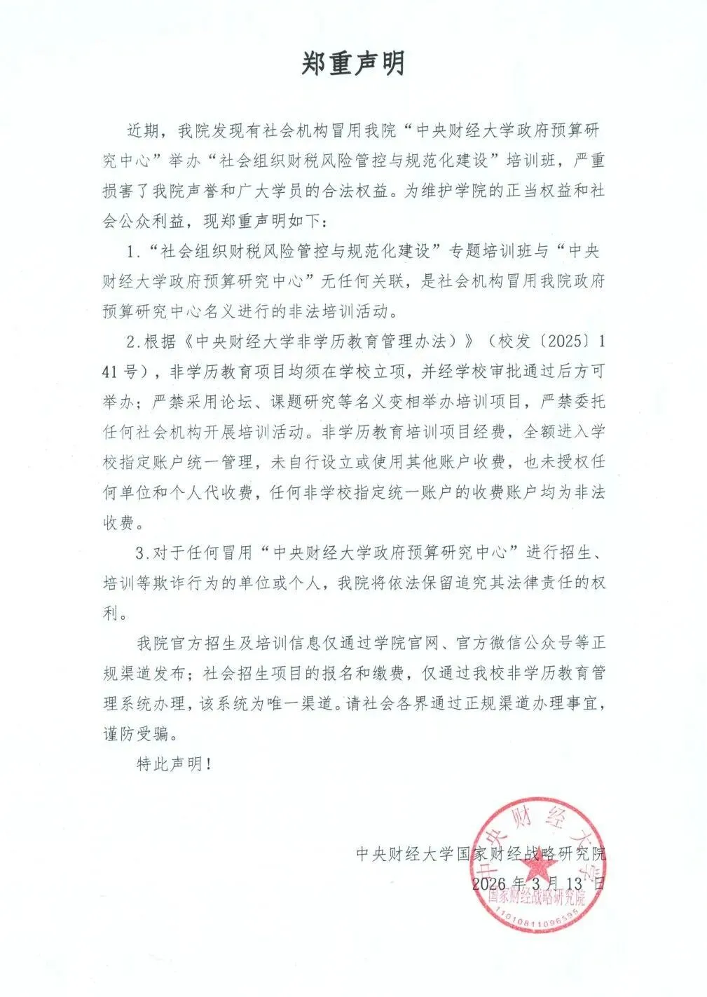 郑重说明