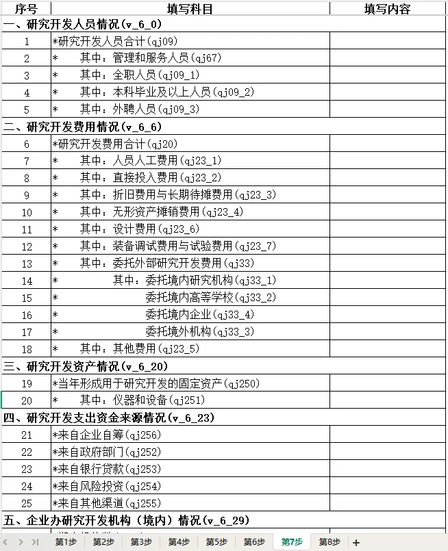这份Excel模板最大的优势,就是“完全还原系统、按照系统框架”,精准匹配火炬统计年报系统的8个填报步骤,从第一步企业概况、到第八步审核提交,每一步的填报模块、指标名称、数据口径,都和系统完全一致,没有任何偏差,大家不用再反复对照系统核对指标,节省大量时间。