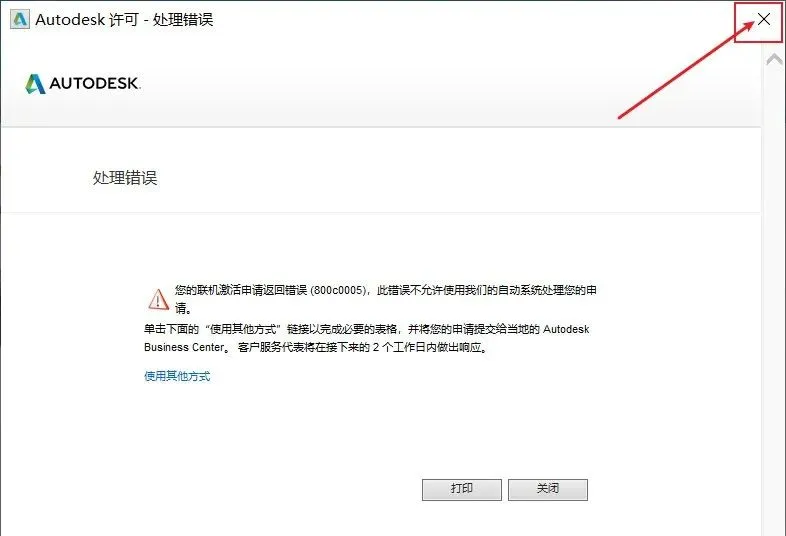 22.此时会显示处理错误或者说无效的序列号,此时不用管他,关闭这个界面;