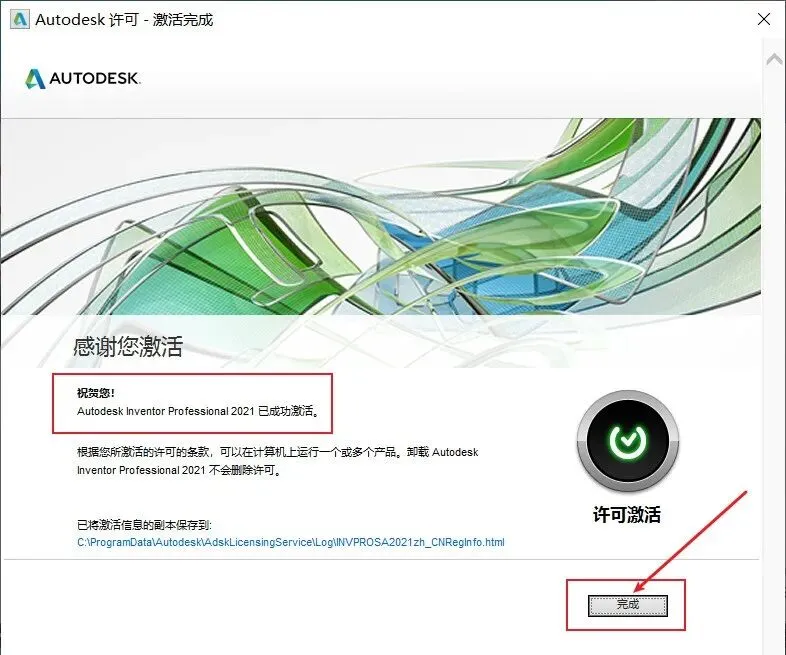 31.此时显示产品已经激活成功,然后点击完成;
