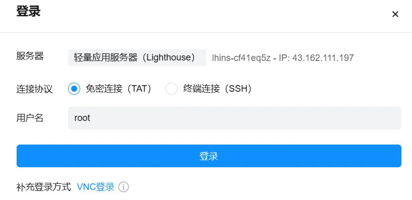 打开腾讯云(或你用的服务商),找到服务器,点登录,免密连接进去。