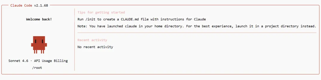 看到 Claude Code 的界面出来了,就说明装好了。