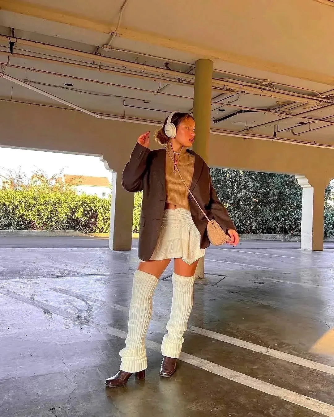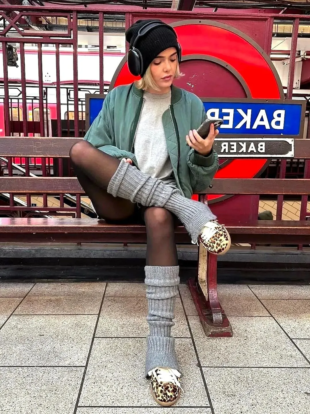 尤其是早.晚温差.大的.时候,针织袜.套配.乐福.鞋、运动.鞋,既保.住了.体面,也不会.显得.过冬过.头。你想啊,一条薄.裙下.面空荡.荡,再配双.单鞋,哪有.脚踝处.有点.软糯层.次来得顺.眼。