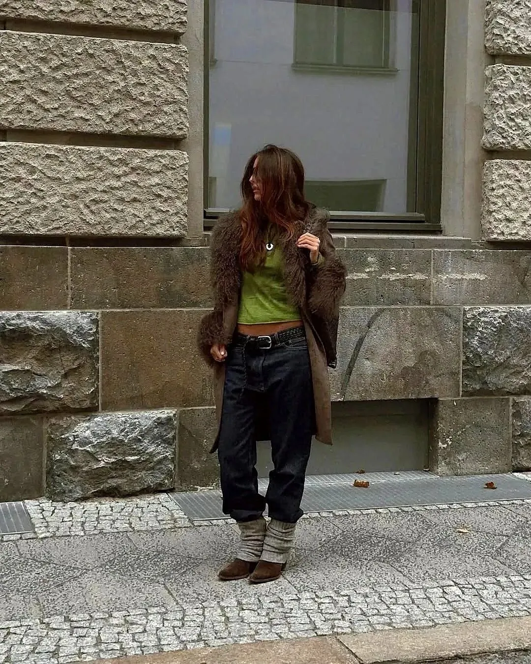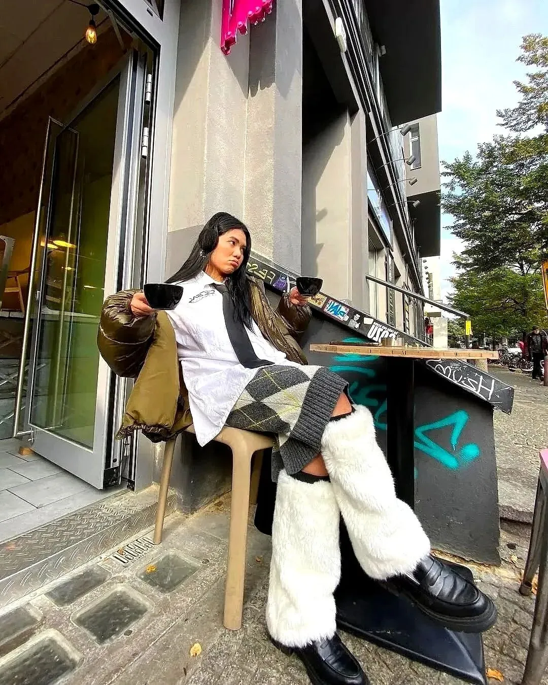 如果.是日常.买菜、接孩.子、散步.穿,选针织.就够.了。要是去.聚会、喝下午.茶,稍微.带一点蓬.松感.的袜.套,搭配.半裙会更.有层次。但毛太.炸、体积太大.就不适合.普通人,容易.把重心全.压在.下半身。