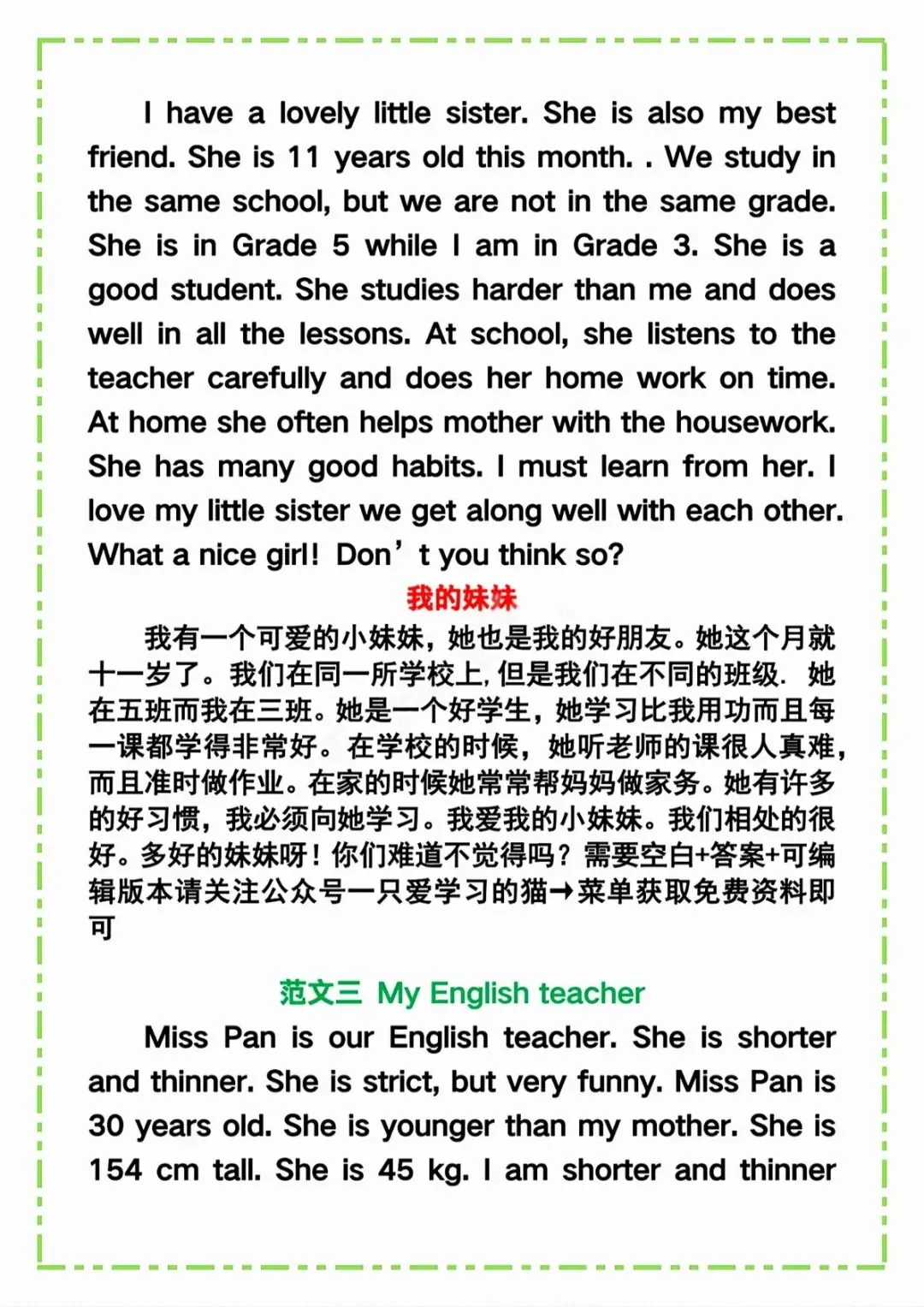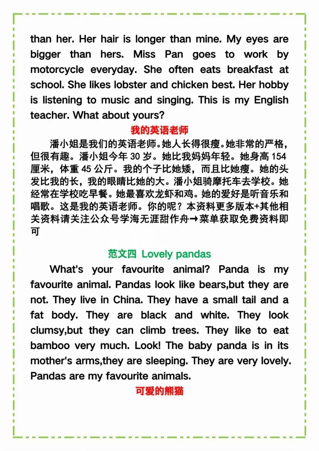 可下载丨六年级下英语《常考作文范文精选》