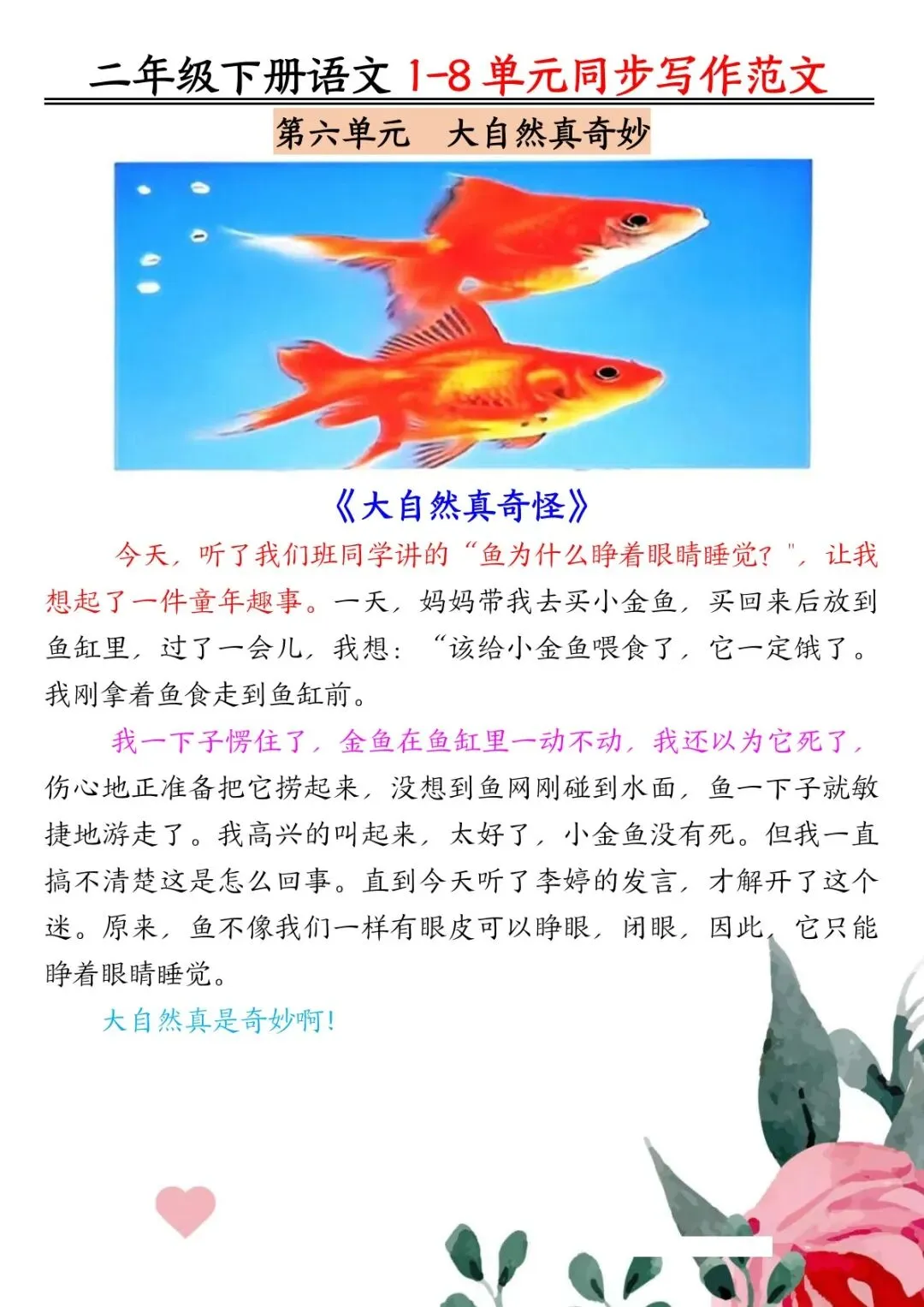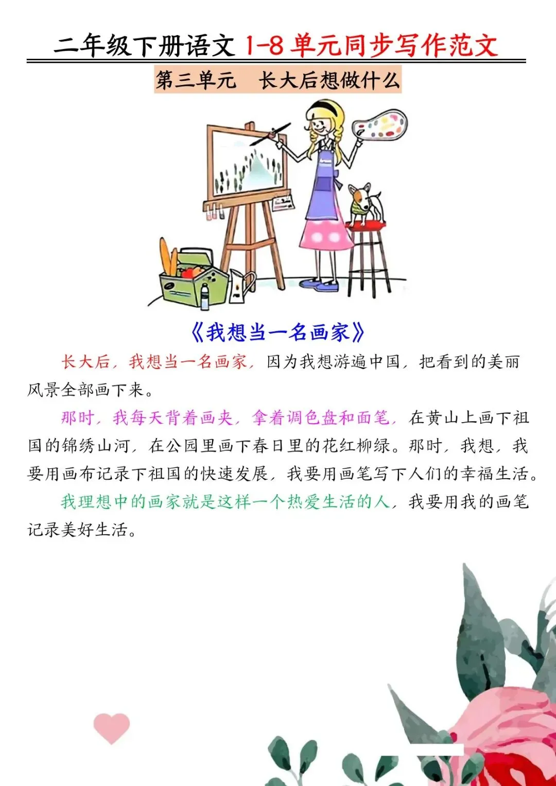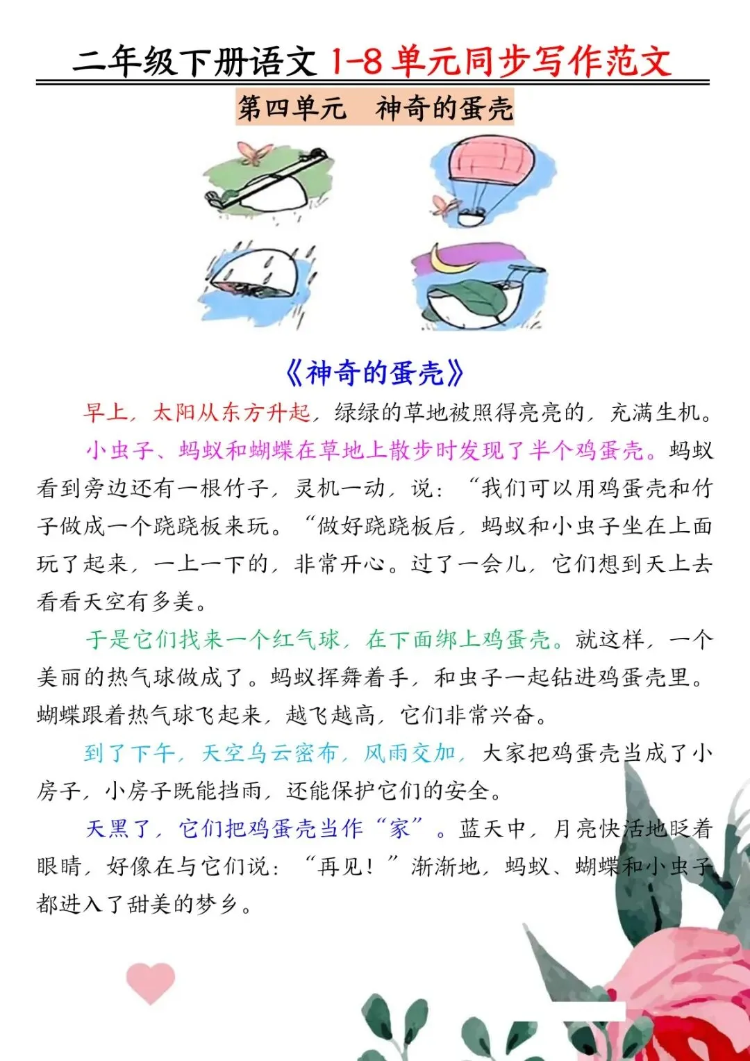 可下载丨二年级下册语文1-8单元同步作文范文7页