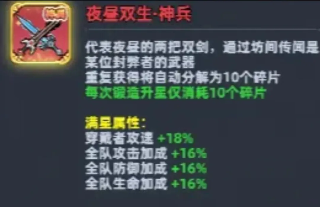 无需任何星级,只要拥有它,就能为整个小队带来三项基础属性的提升。这是一个非常扎实的团队基石。而最大的彩蛋在于佩戴者本人:额外获得的攻击速度加成,让主C从一开始就领先一步。