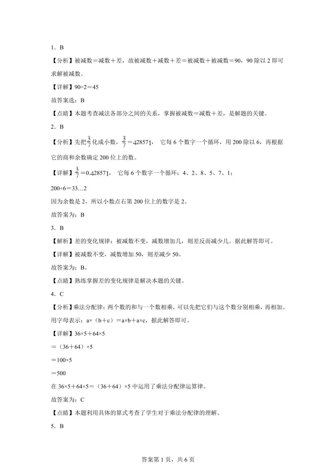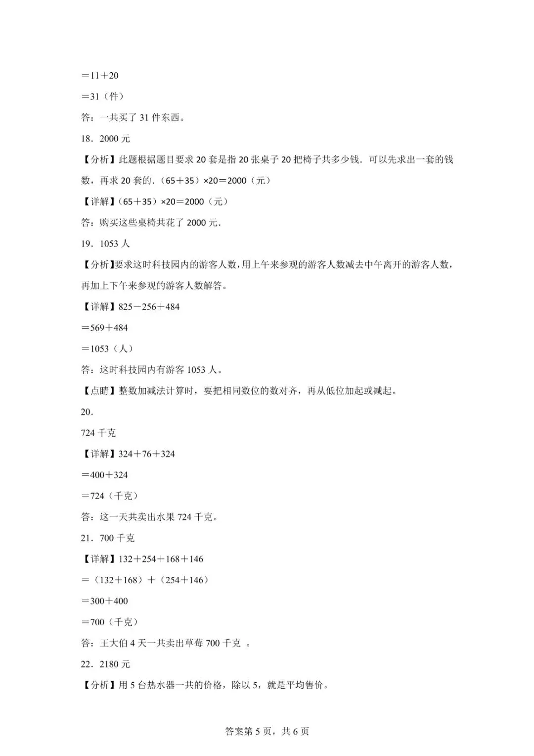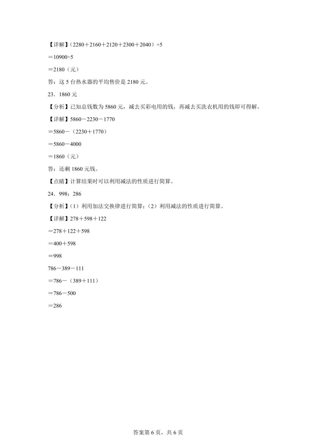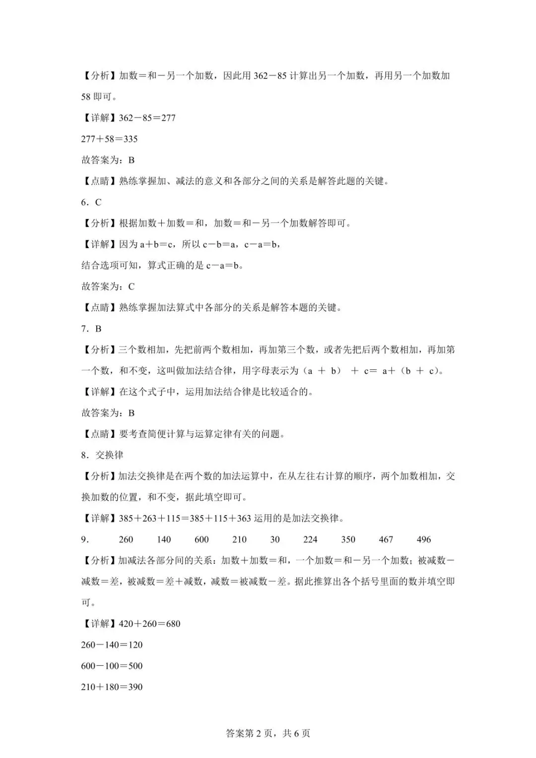 可下载丨四年级《加减法的关系和加法运算律》单元测试卷