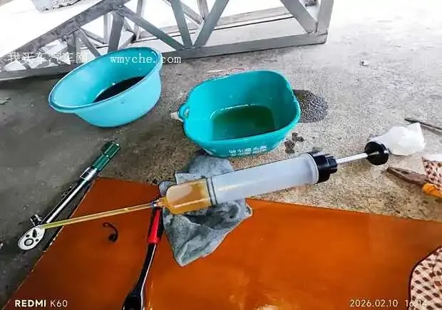 左侧盆子里黑黑的是放出来的变速箱油