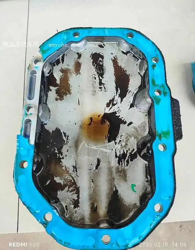 拆下来的油底壳,密封垫需要用美工刀小心的清理。