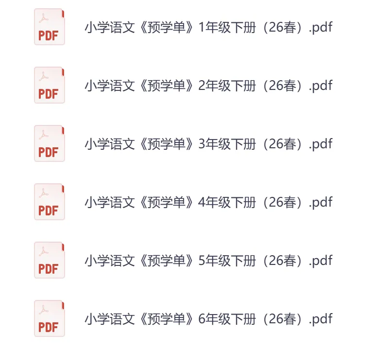 26春《小学语文预学单》课前预习必备123456年级下册(免费下载)
