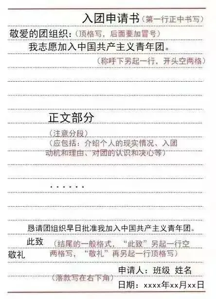 【入团申请书】书写格式