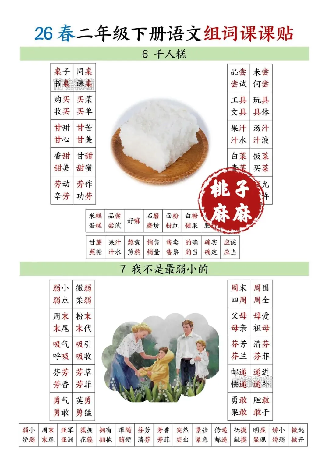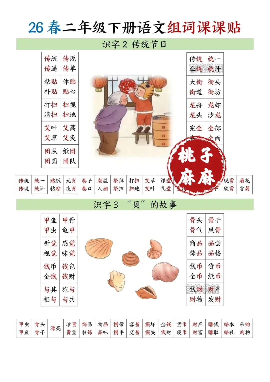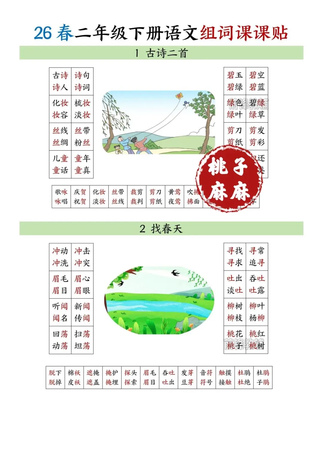 二年级下册语文组词课课贴!电子版可打印